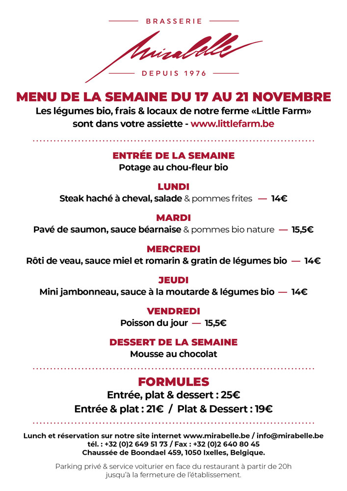 Brasserie familiale au cœur de la capitale, à votre service depuis plus de 40 ans. La Mirabelle vous propose des spécialités bistrot savoureuses et de qualité. Le cadre d’exception et l’accueil chaleureux du lieu attirent les amoureux de la cuisine de brasserie.